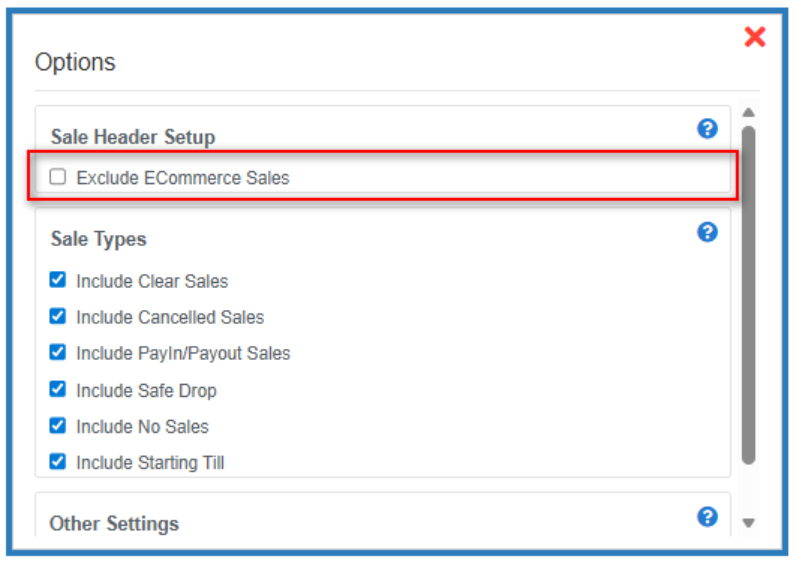 - Checkbox: Exclude ECommerce Sales