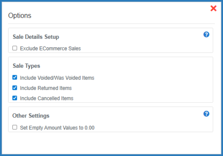 - Sale Details Export: This export type allows users to generate a file that includes item-level details for all sales across the selected locations, along with the corresponding sale header information.