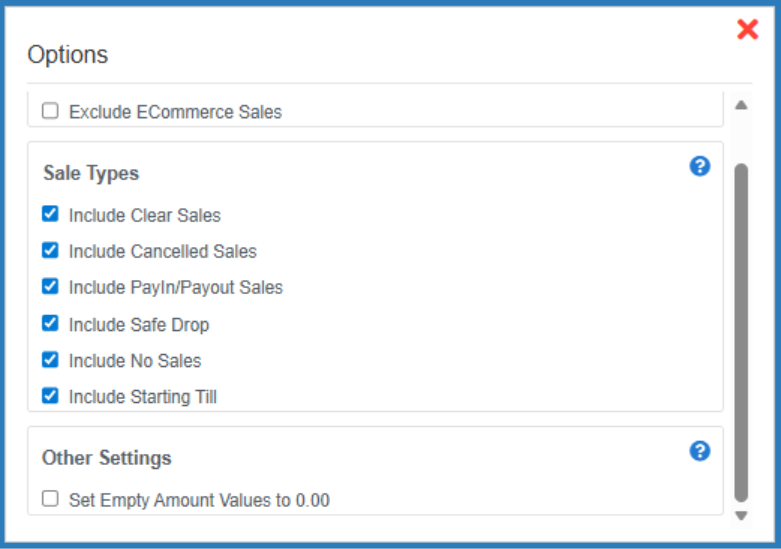 - ECommerce sales will be excluded from the export file.