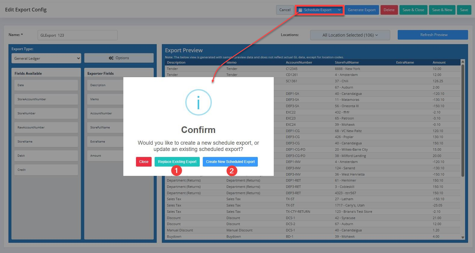 2) Create New Scheduled Export: This button lets you schedule a new Export Configuration.