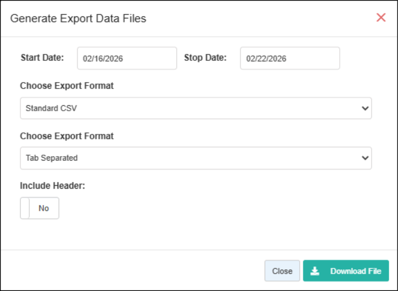 - Click "Download File" to generate and download the export.