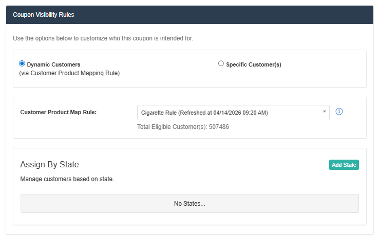 There are 2 areas for discounts where you need to customize to segment the products and regions. By default discounts would only apply for customers who have shopped in the assigned stores of the promotion, but you can optionally control the states and ZIP codes in the Customers tab of the discount. Also, there is a field for Manage Customers Dynamically. By turning this on, you can now pick one of your Product Map Rules to segment this discount.