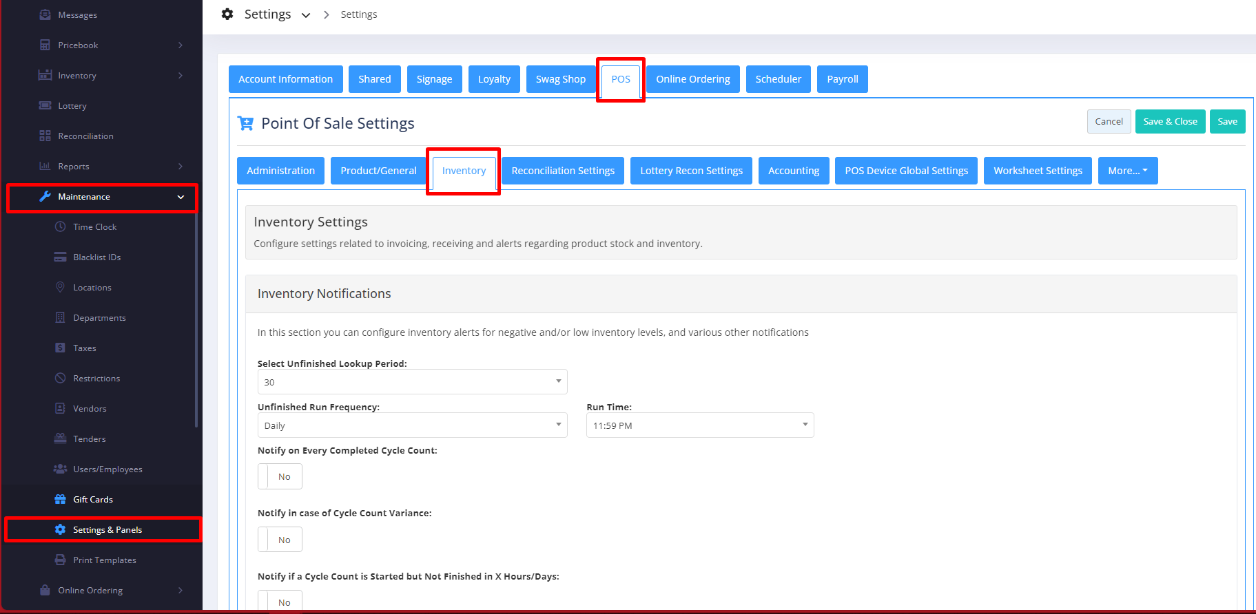 For full Settings & Panels information, please see Inventory Settings for more information on this module.