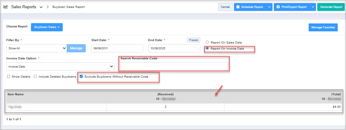 - If No Receivable Code Is entered: The report will include all buydowns within the selected date range (based on other applied filters).