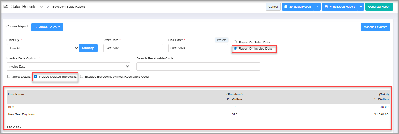 2. Generating the "Buydown Sales Report"