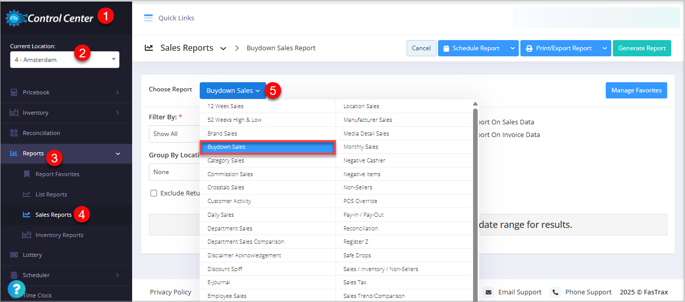 - Select the date range and click "Generate Report" to view the Buydown Sales Report for the selected date range.