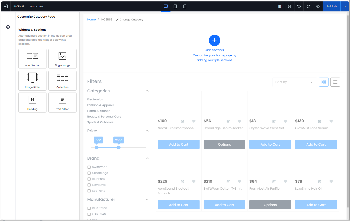 After clicking "Create New Template", you will be redirected to a preview layout that replicates the actual Category Page from the online store.