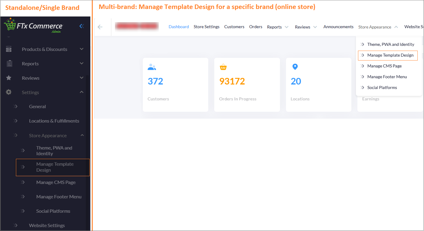 - Step 4: Click the Store Appearance -> Manage Template Design