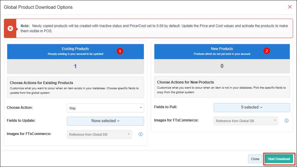 This is where you’ll define how new and existing products should be handled before starting the download.