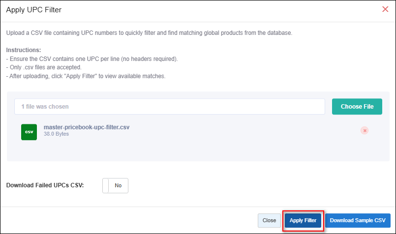 CSV Upload - Apply UPC Filter (Global Pricebook)