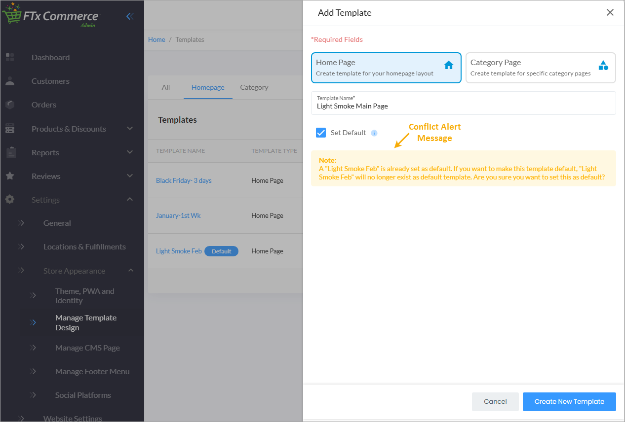 - Default Template Conflict Alert: