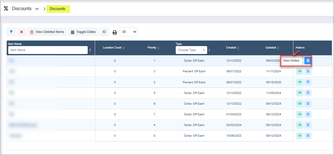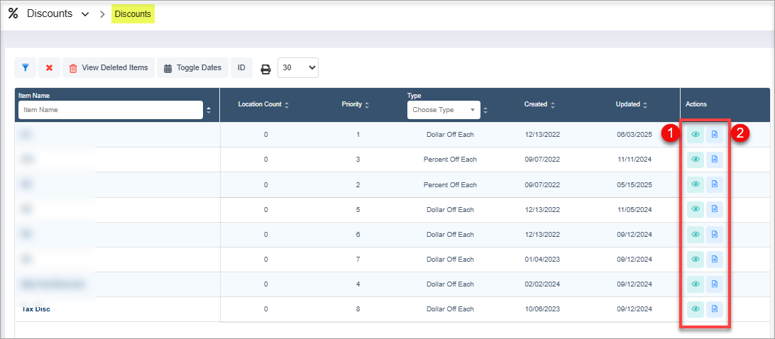 Figure 0.2- View Discounts: Click the View icon to view detailed information about the selected discount.