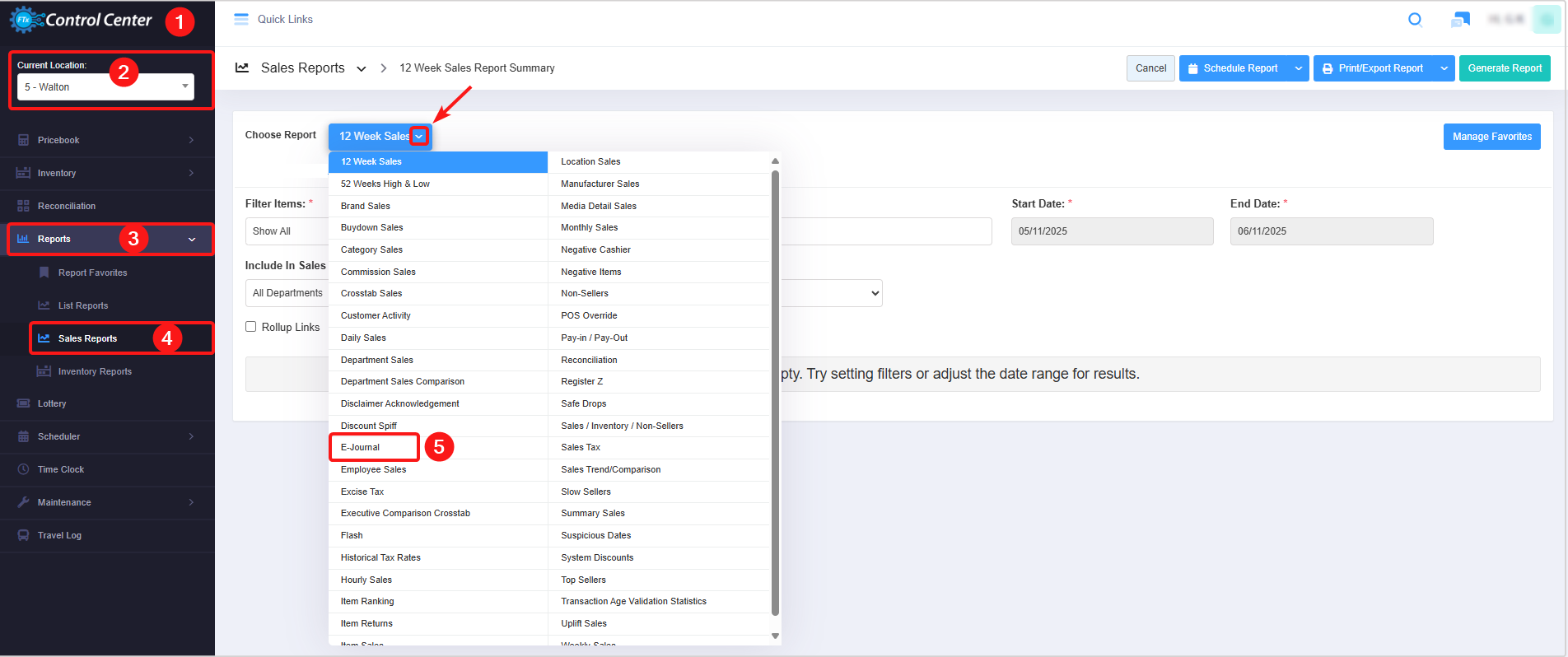 - Navigate to the E-Journal Report screen.