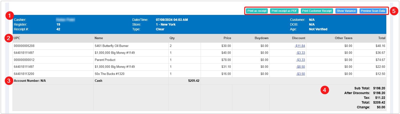 - Print Customer Receipt: Prints a customer-friendly version of the receipt.