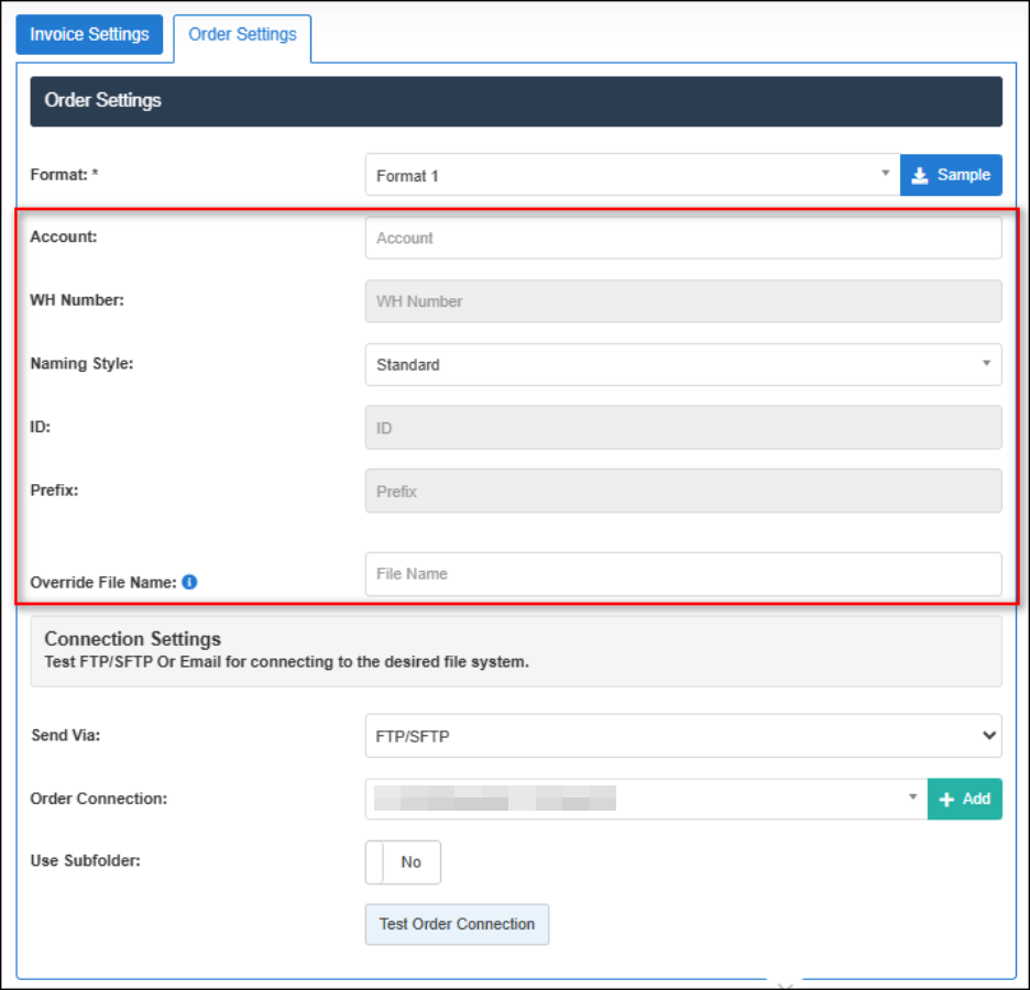 2. Order Connection: Click this button to validate the server connection where the invoice files will be placed. See Figure 1.1.6.