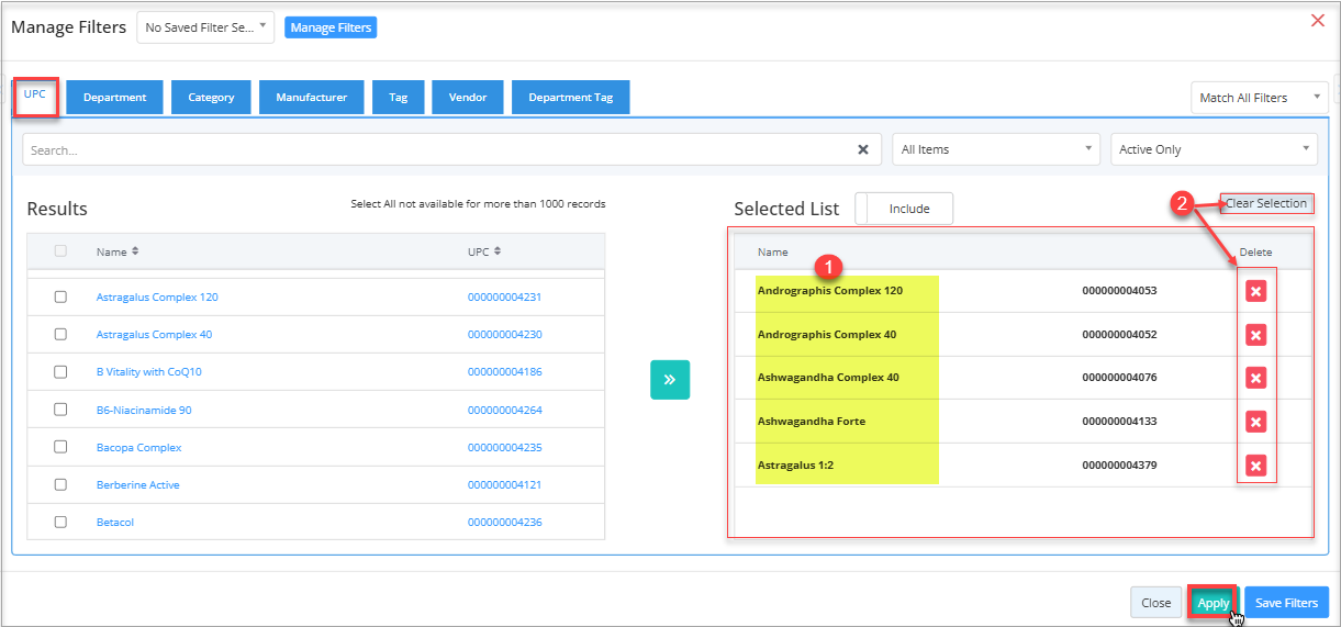 - UPC: Selecting UPC will fetch the items along with their UPC in the results section.