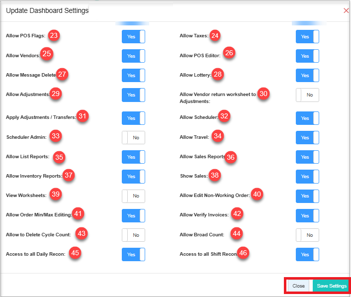 - Access to All Shift Recon: This setting, when set to YES, will give the employee access to all the shift reconciliation from POS.