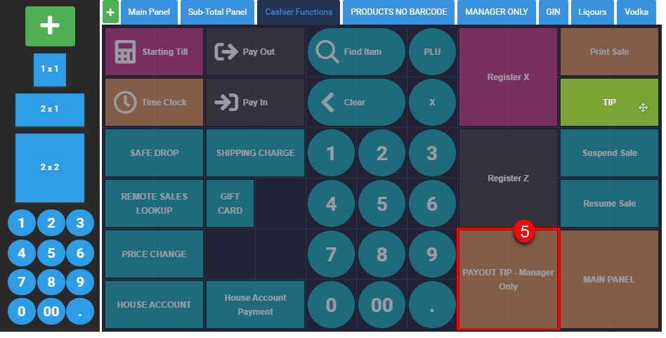 Finally, once you've reached the end of the given shift and/or day, this is where you will want to create and utilize a Payout Tip button. See Figure 1.11. The "PAYOUT TIP" button will effectively be a payout button that will be assigned the "TIP PAYOUT" payout account we created earlier. This will, in turn, allow you to pay out tips to your employee(s) as needed.
