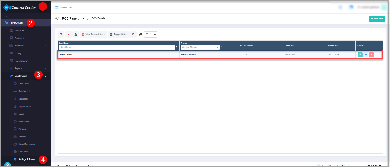 Clicking the Edit/Modify button on POS Panel list page will open up the Edit POS Panel screen.