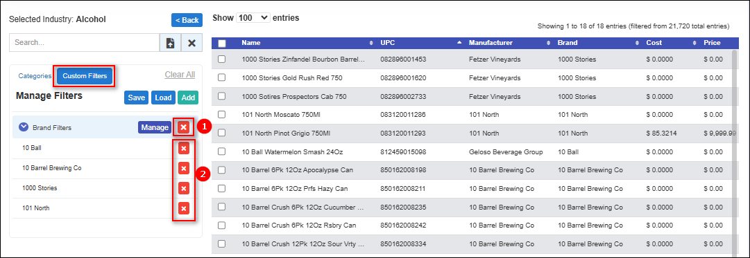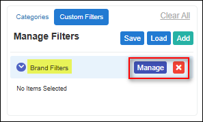 - To delete an individual brand filter, click on the X next to the individual brand selection.