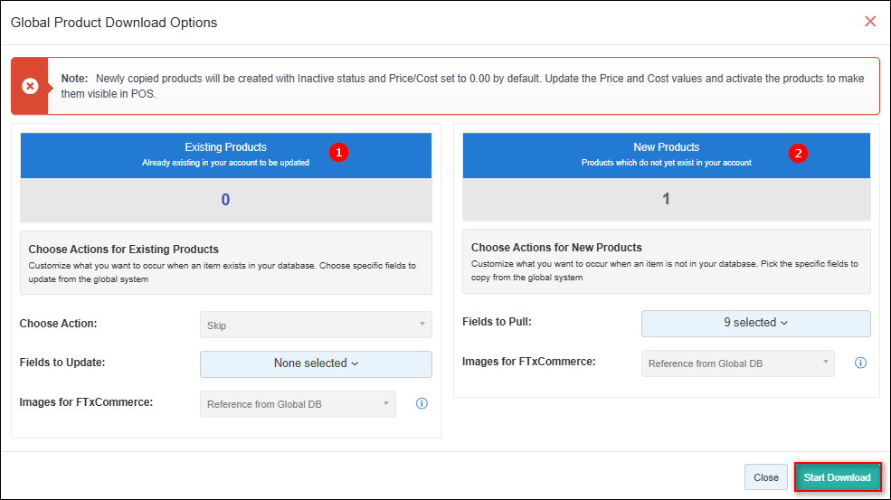 This is where you’ll define how new and existing products should be handled before starting the download.