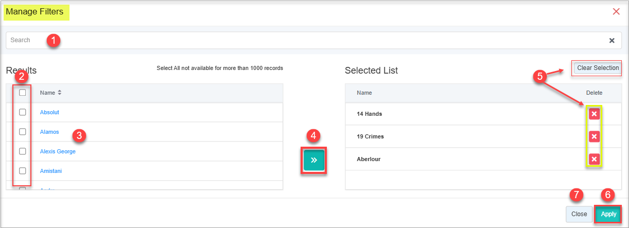 - Select a filter and click on “Select Filter” to apply it to the product list.