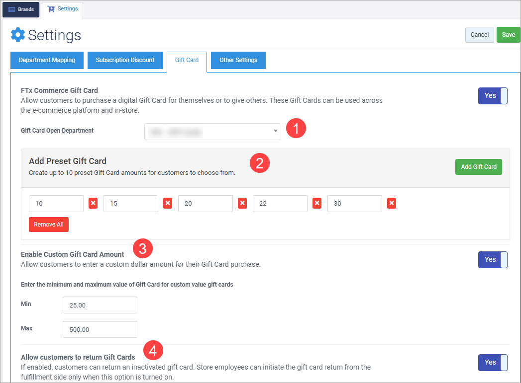 2. Setting Up Preset Gift Cards