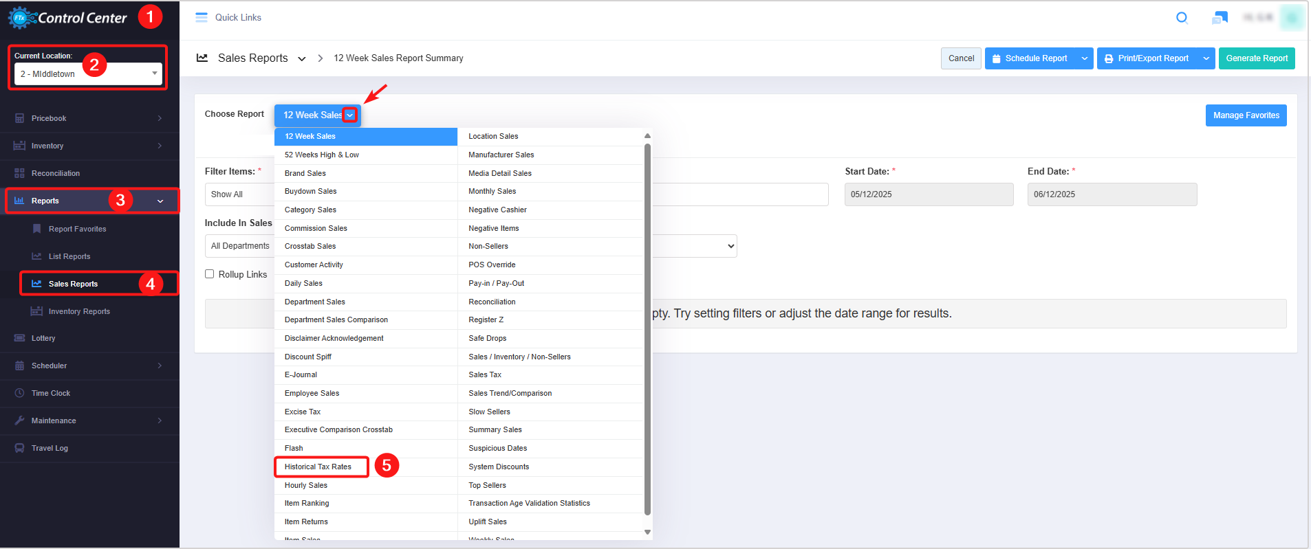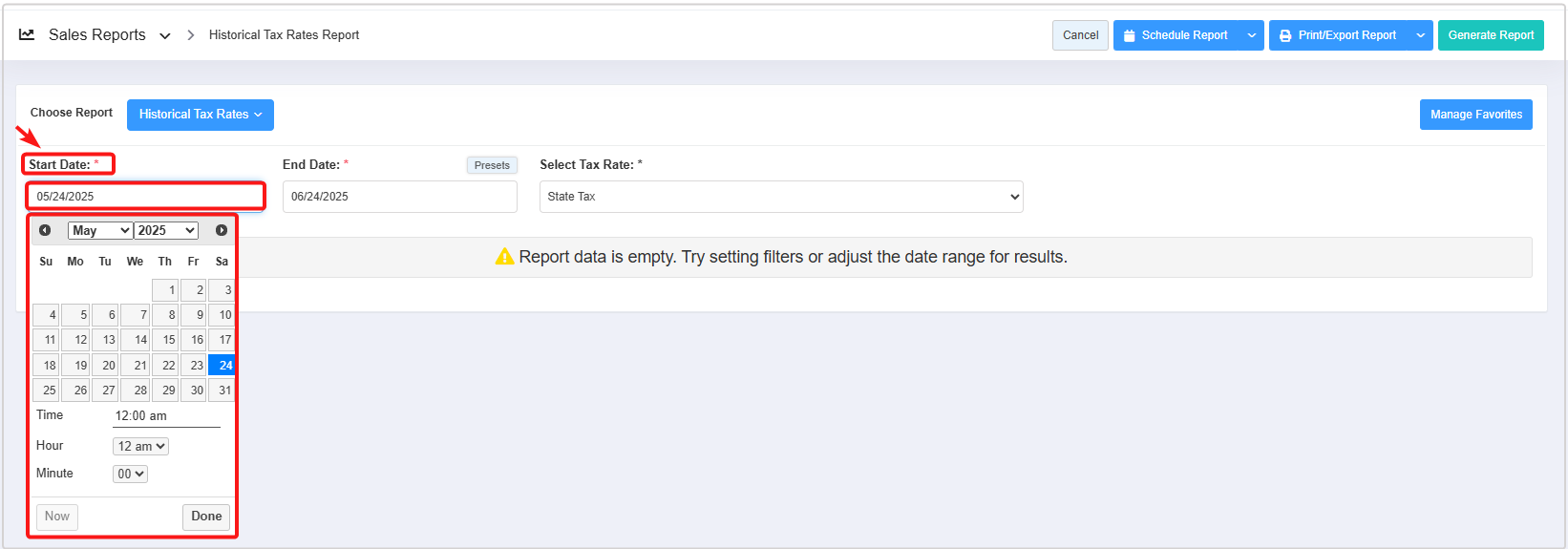 - How to generate the "Historical Tax Rates Report" for the selected date range