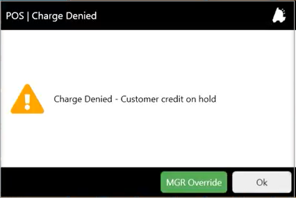 If Credit Hold is turned on for a house account, a manager can enter their credentials to approve the sale.