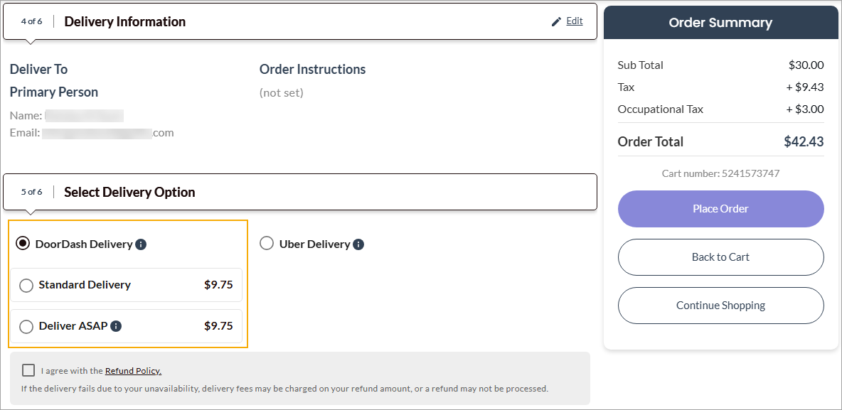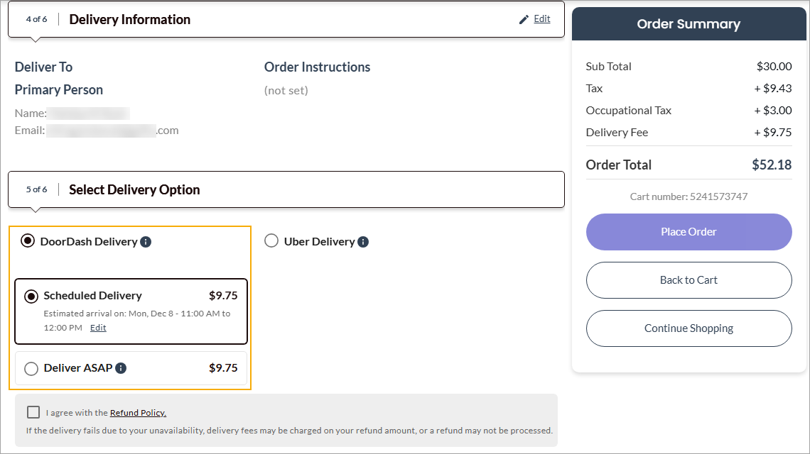 - Orders go via DoorDash (if enabled) or Delivery by Our Team (if DoorDash is not enabled).
