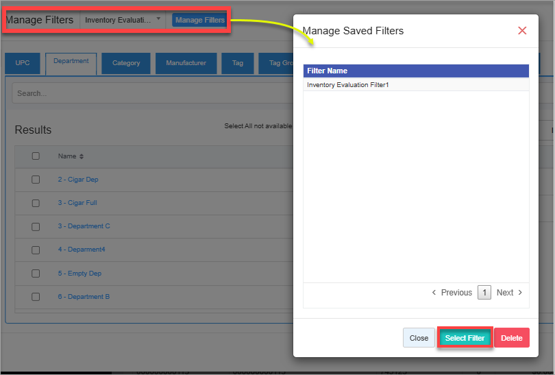 - The saved filter will be displayed under the "Manage Filters" button as highlighted in Figure 4.1.3.