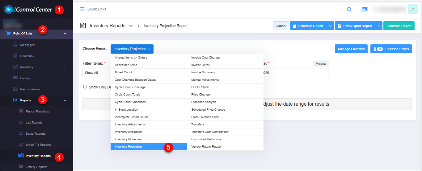 To reach the "Inventory Projection Report," follow the below steps: