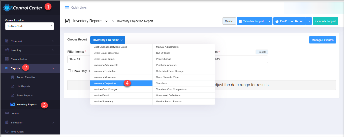 To reach the "Inventory Projection Report," follow the steps below: