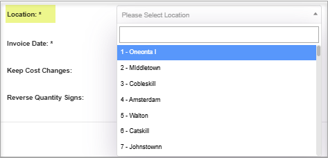 - Location: Select the location from the drop-down list for which the invoice will be copied.