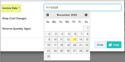 - Reverse Quantity Signs: If this is toggled to YES, it copies the invoice using the exact opposite values of the items applied to the original invoice. If -5 is on the original invoice, then +5 would be on the newly copied invoice.