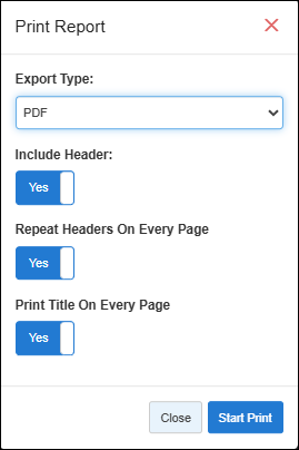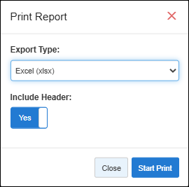 Once you click on "Start Print," an Excel (.xlsx) file containing the displayed data will be generated.