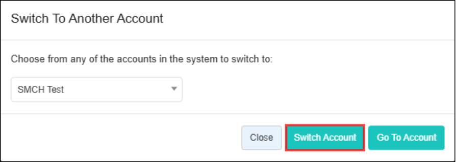 - Click on the "Go To Account" button and select the manufacturer account from the dropdown.