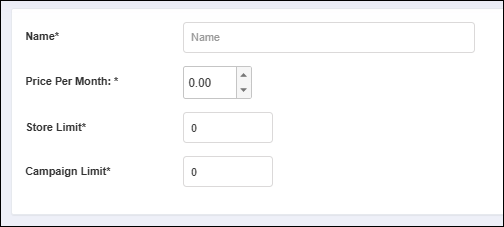 - Store Limit: Define the maximum number of stores a manufacturer can create or manage under this package.
