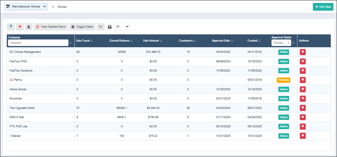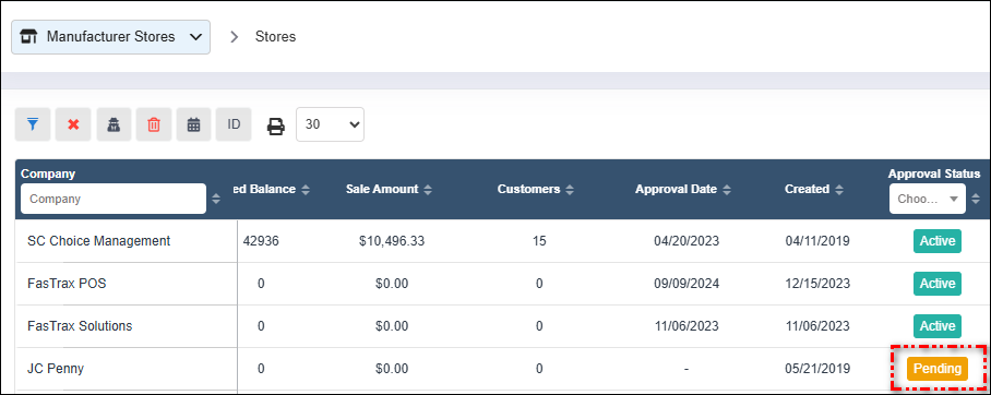 - Newly added stores are initially created with a Pending status.