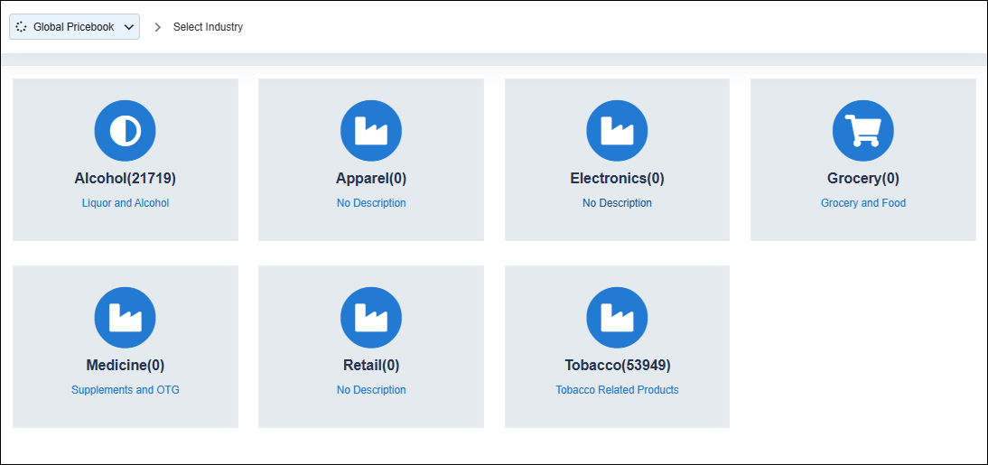 - Click and select your industry to reach the Global Pricebook home page as highlighted in Figure 2.2.