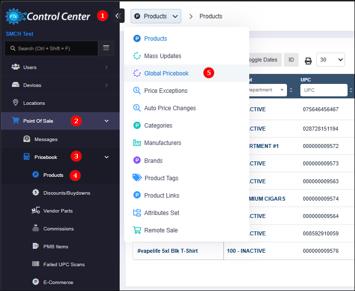 Add New Product Using Global UPC: You can add a new product creation by entering a UPC and instantly retrieve matching details from the Global Database. - Follow the steps below to navigate to “Global Pricebook” and begin accessing products by industry.