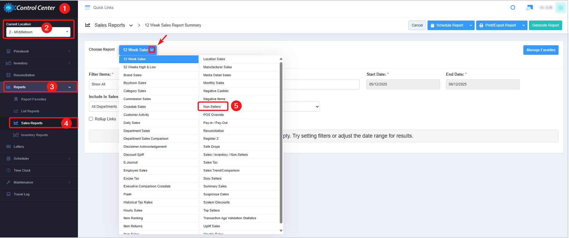 - Select the date range and click "Generate Report" to view the "Non-Sellers Report" for the selected date range.