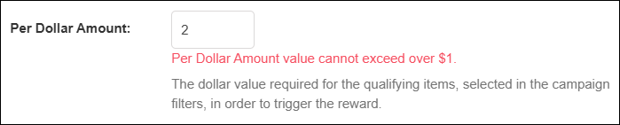 - Per Dollar Amount: This field specifies the amount of money a customer needs to earn a certain number of trigger tokens. This field defines the conversion rate between the dollars spent and the tokens earned.