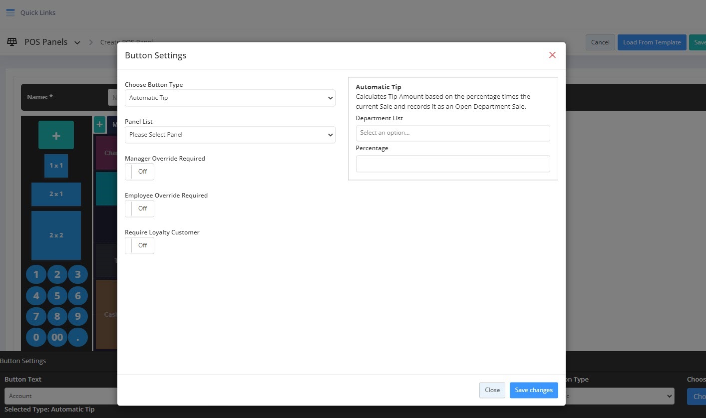 5.1: Load From Template: Use this button to load the POS panel template from the existing panels. This button is useful when creating a new panel similar to the existing one, but with a few changes.