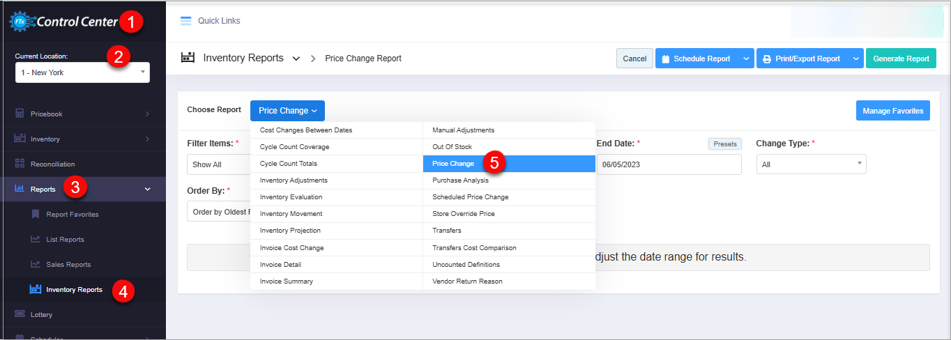 - How to generate the "Price Change Report" for the selected date range