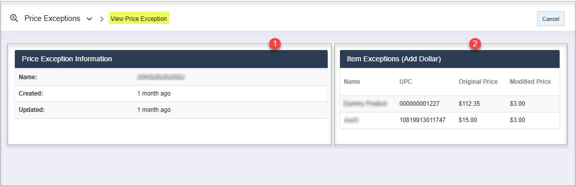 - Name: The identifier or title of the price exception.