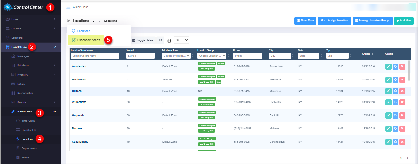Click the “Pricebook Zones” as shown in the image above, labeled Figure 1.1. You will navigate to the list of Pricebook Zones as shown in Figure 2.1.