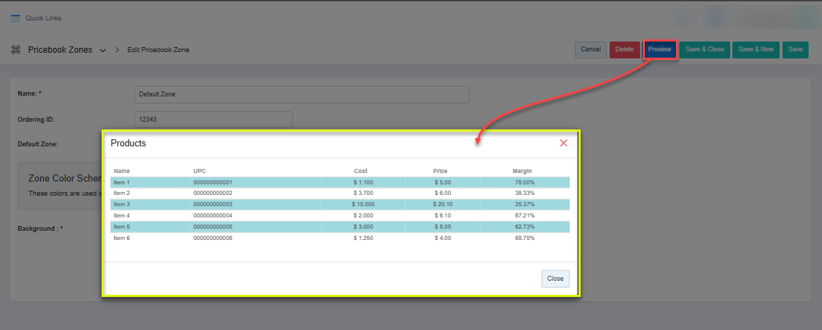 - Save & Close: Click on this button if you want to save the Pricebook Zone and close it.