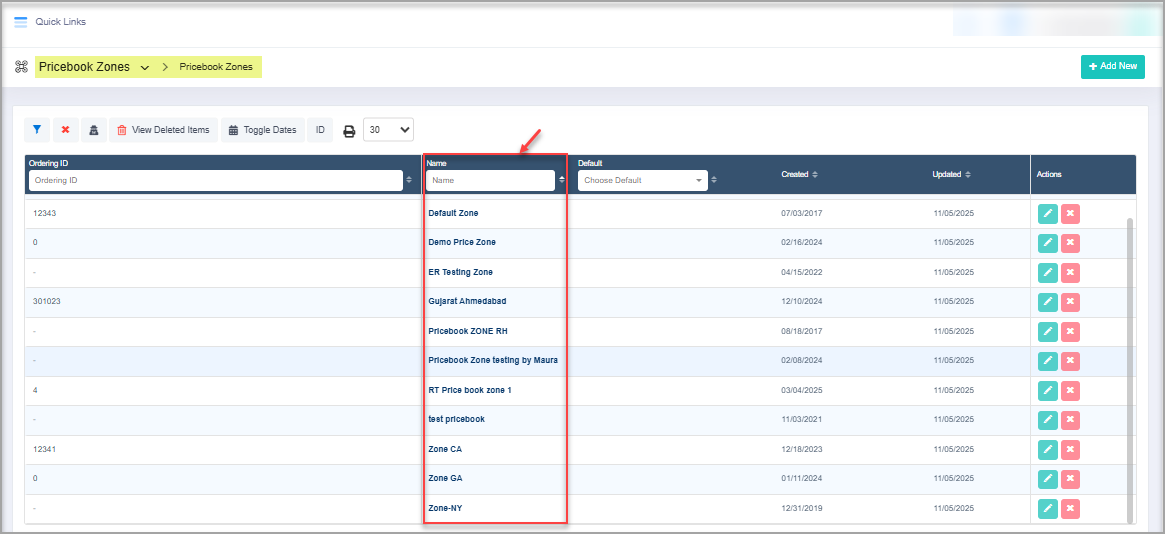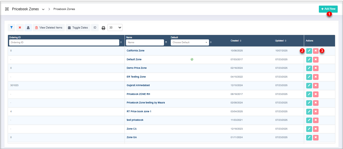 1. Add New Pricebook: This button helps the user add a new Pricebook Zone.