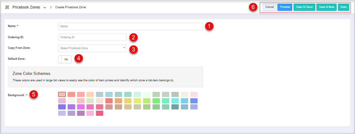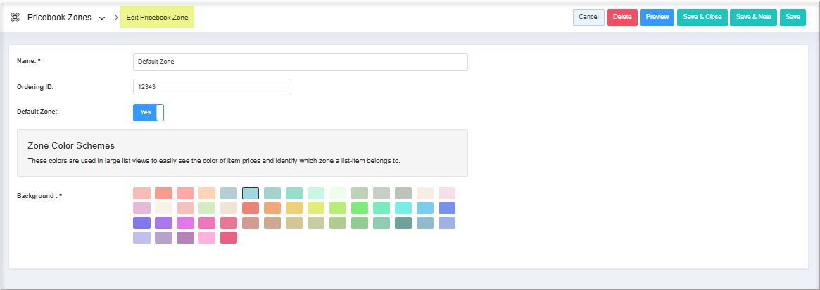 2. Ordering ID: Define the sequence in which the Pricebook Zone appears in lists. Zones with lower Ordering IDs are displayed first.